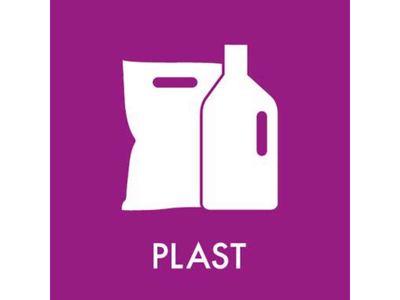 Affaldsskilt PLAST 12x12 cm selvklæbende, 1 sæt med 9 illustrationer: