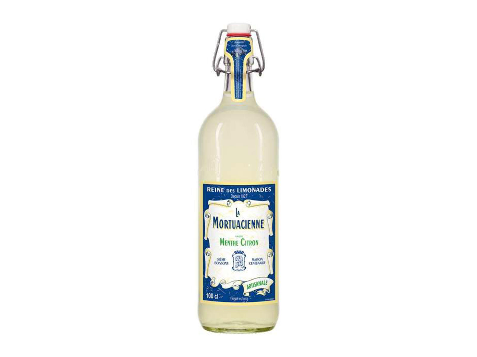 Kulsyreholdigt vand, sukker, syre : citronsyre, naturlige mynte-citron smagsstoffer og andre naturlige smagsstoffer, Antioxidant: ascorbinsyre, Stabilisator: E445, farvestoffer (E150d, E101(ii))
