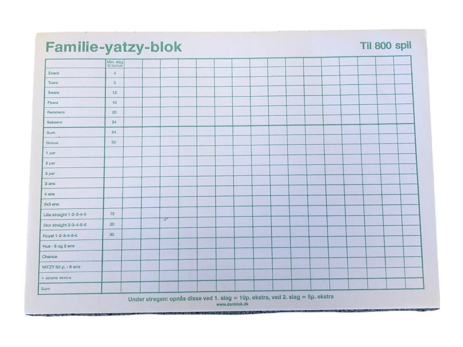 YATZYBLOKKE A5 GRØN