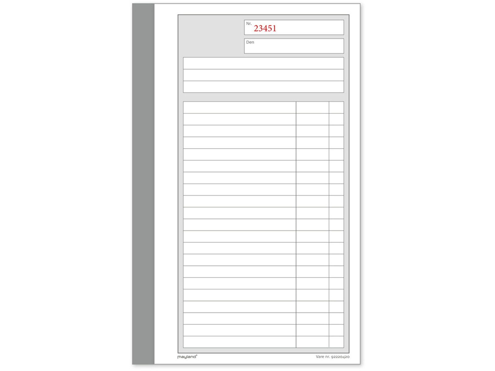 2 x 50 nummererede blade med talkolonne. Karbonpapir indlagt.