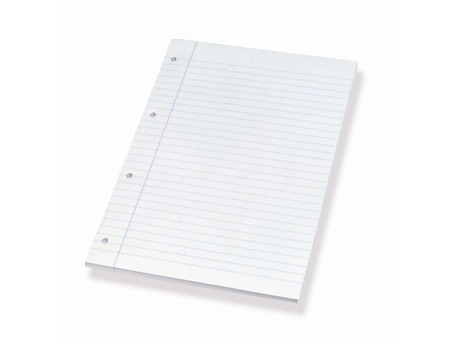 A4 blok med linierede sider og huller i siden, så bladene nemt kan afrives og indsættes i en mappe. Sammenlignet langs venstre side-