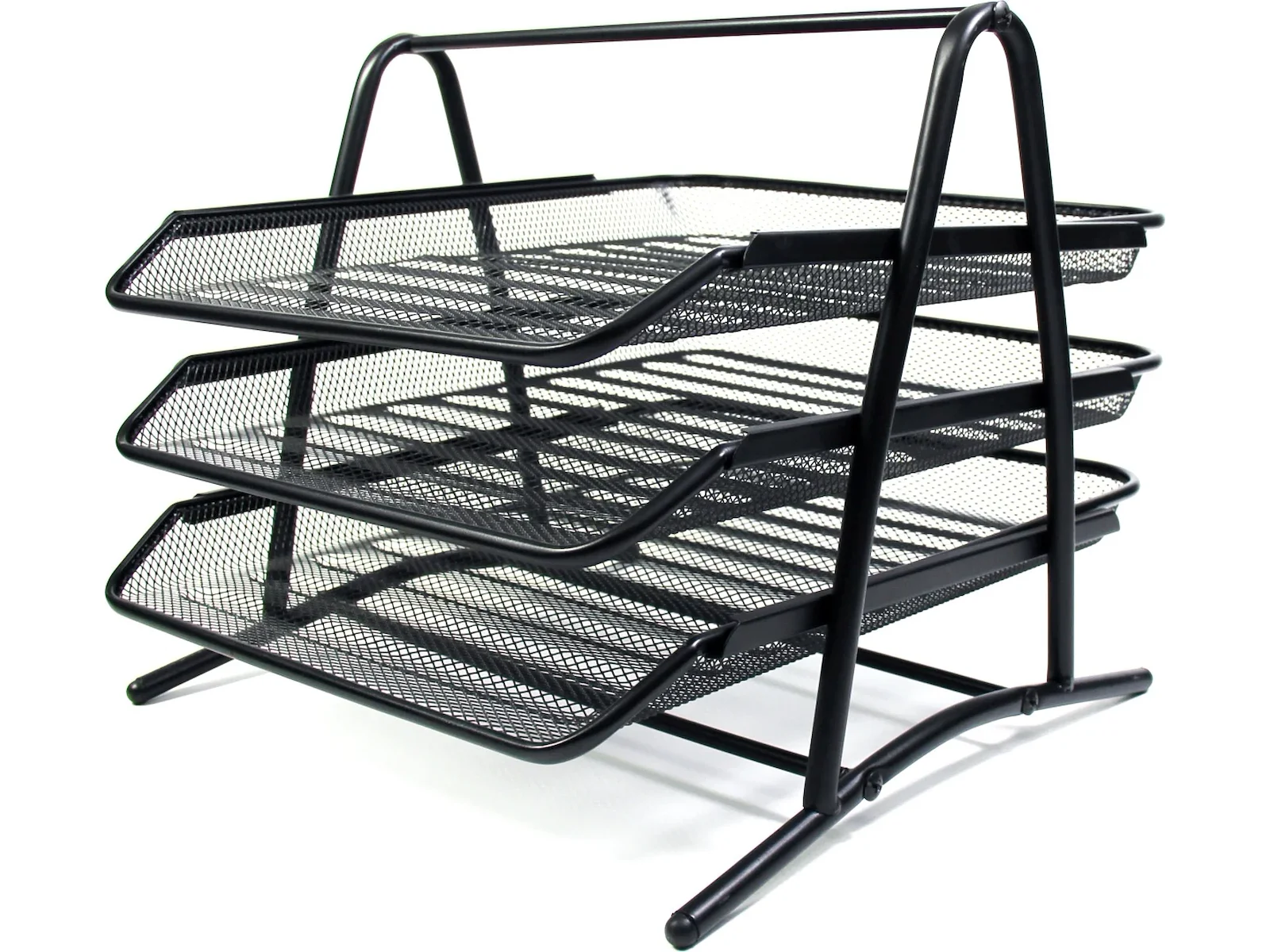 Brevbakkesæt med 3 udvidelige rum MESH Sort. 260x290x350mm (højde x bredde x dybde). Skrivebordserien MESH er skandinavisk designet skrivebordstilbehør i metal til alle formål.