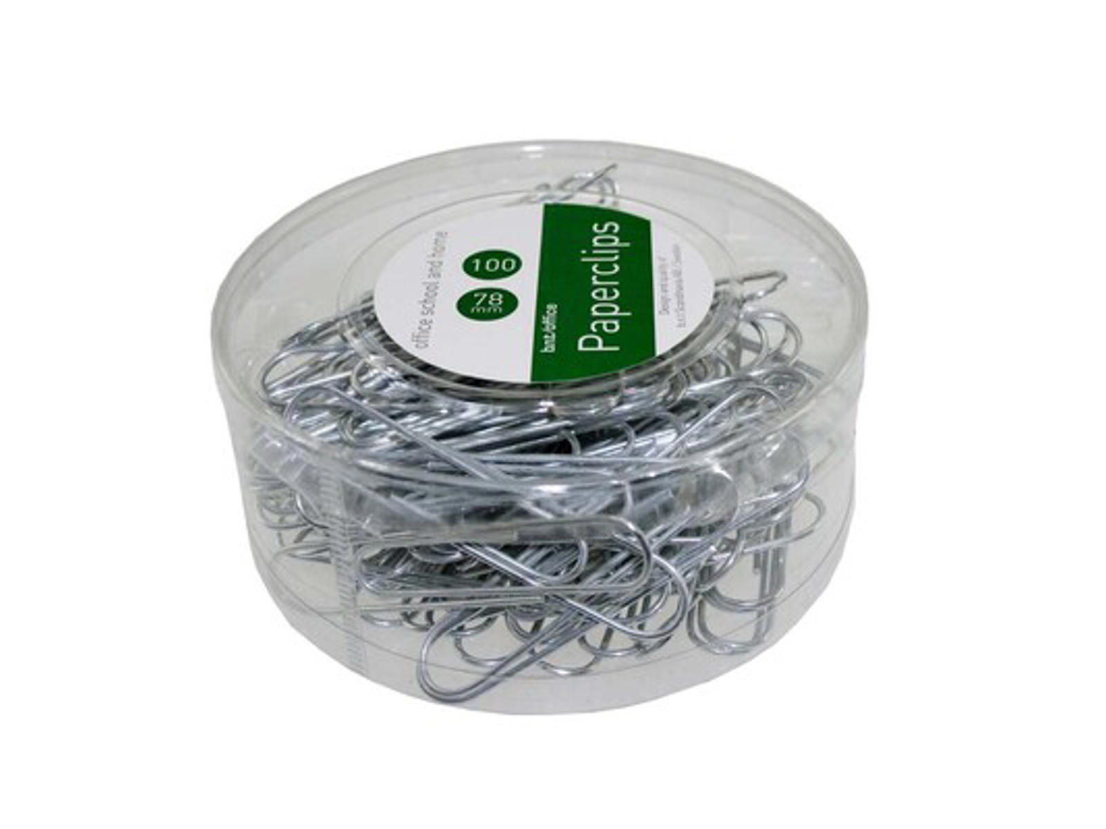 Blanke clips i æske. Uundværlige på kontoret til samling af papirer der ikke skal sammenhæftes permanent.