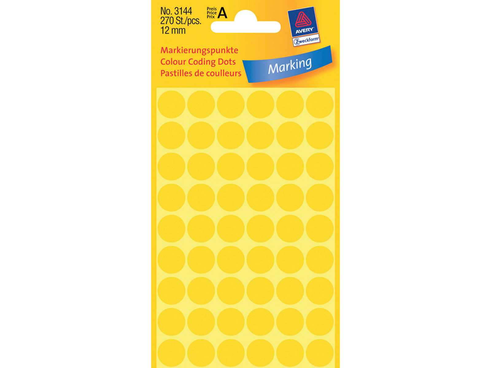 ETIKET AVERY Ø 12MM 270 STK/PK GUL 3144
