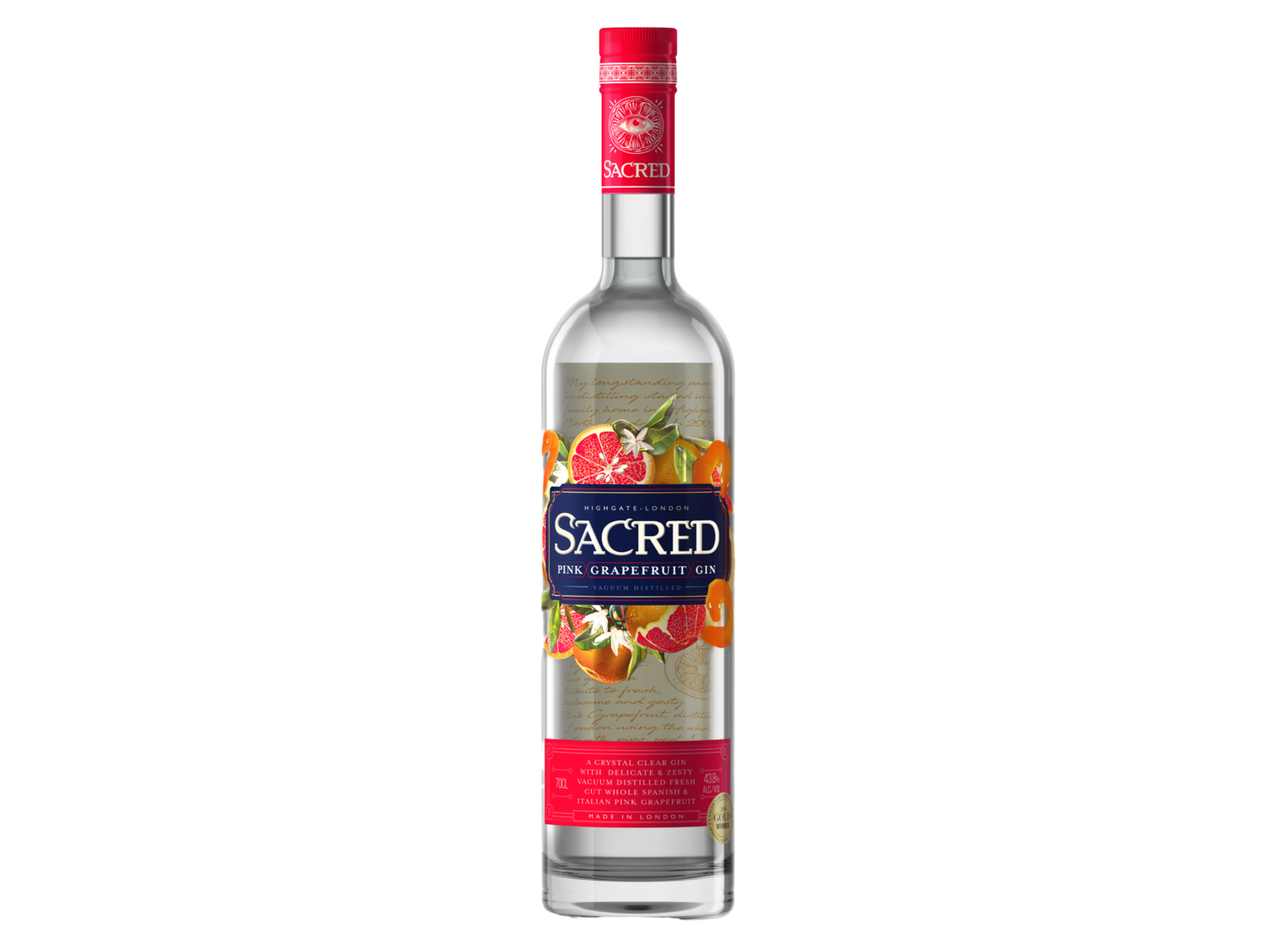 Sacred Pink Grapefruit Gin ØKO er lavet 100% økologisk - endelig. Hele frugten destilleres under vakuum, altså både skallen, frugtkødet og kernerne. Det hele destilleres ved lav temperatur og når destillatet er færdig blendes det til Pink Grapefruit Gin. Denne gin har ca. 90% rent grapefrugts destillat og de sidste 10% fordeler sig på primært enebær men også andre ingredienser fra Sacred Gin, som 'Boswellia Sacra' en slags harpiks brugt til røgelse, som er latinsk og har givet navnet Sacred. Det er en super gin med masser af enebær smag som komplimenteres af grapefrugten. Prøv den i en skøn gin tonic med indian tonic og en store skive pink grapefrugt.