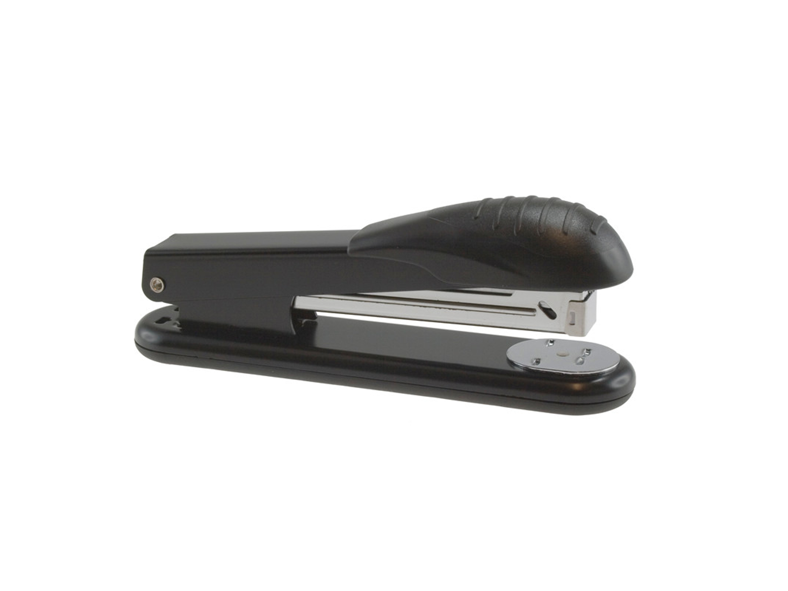 Hæftemaskine i fuldt presset metalplade med plastikdele. Lader op til 210 hæfteklammer, hæfter op til 20 ark.
