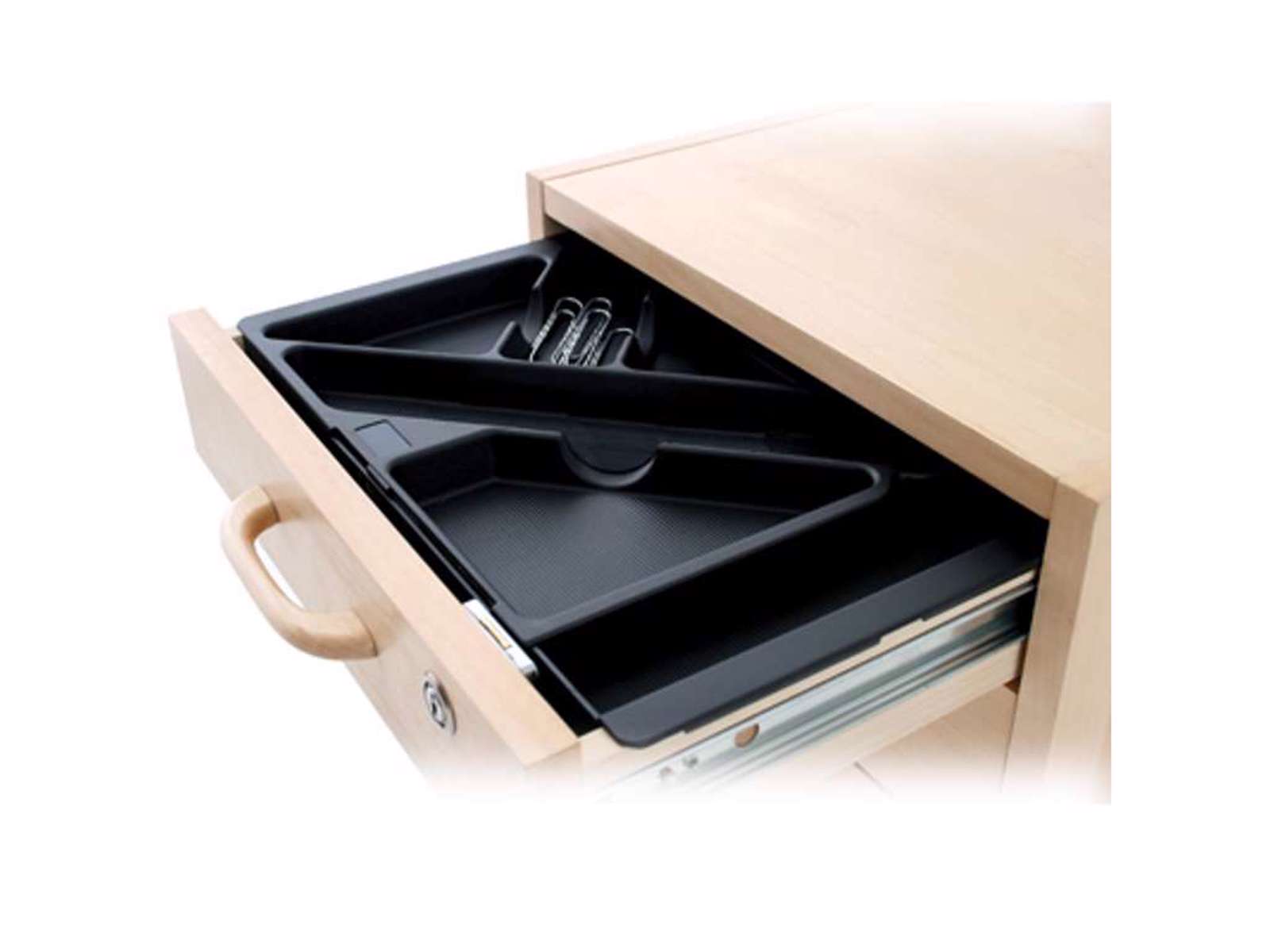 Pennebakke med forskellige rum, så der er hurtigere overblik i skuffen.