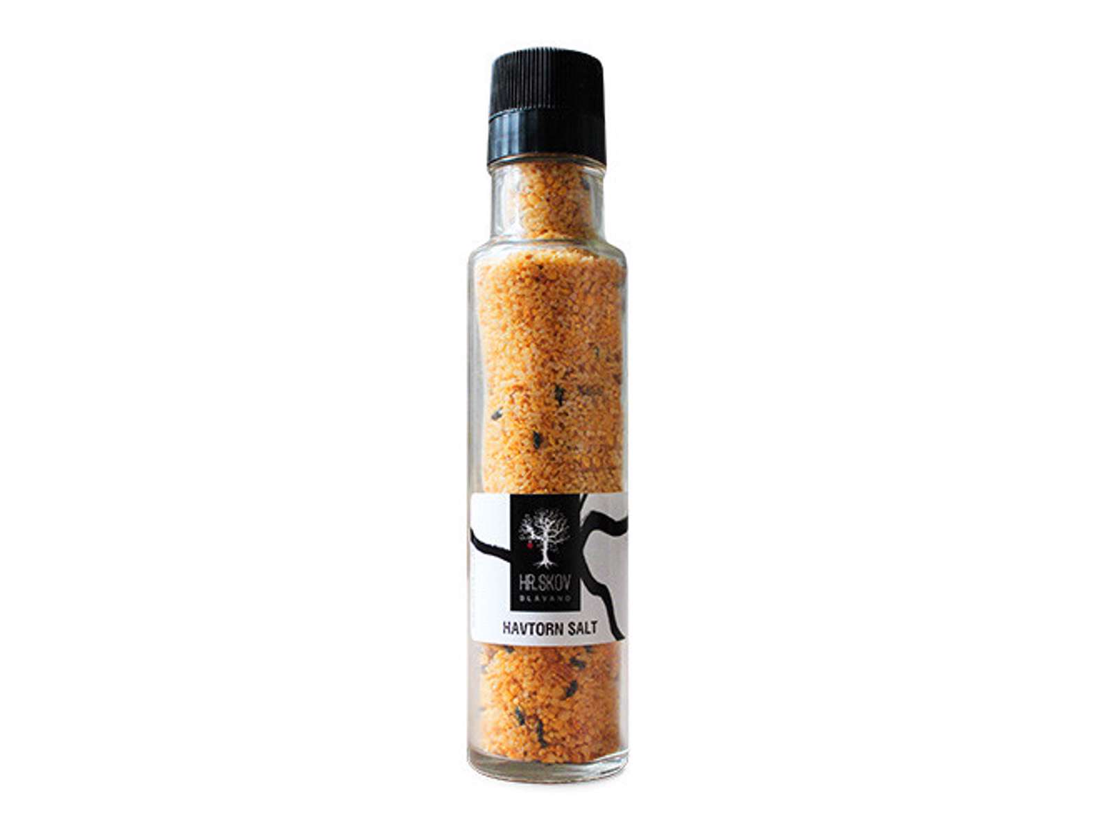 Salt tilsat paste af vilde danske havtorn som vi derefter har tørret. Den kommer så også med den praktiske kværn i toppen. Velegnet til alle former for fisk og skalddyr, salater, smørrebrød.