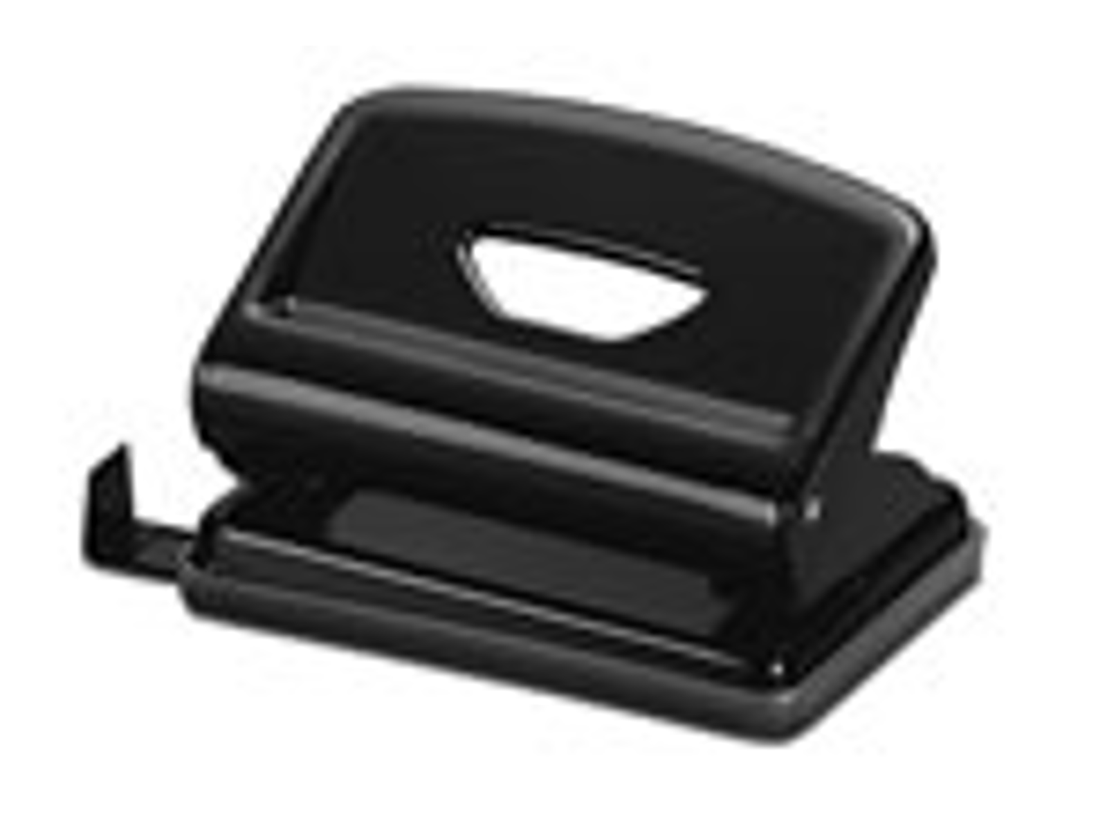 Klassisk hulmaskine med 2 huller, der kan gennemhulle 25 ark papir ad gangen. Der medfølger målepind der indstilles efter formatet på papiret.