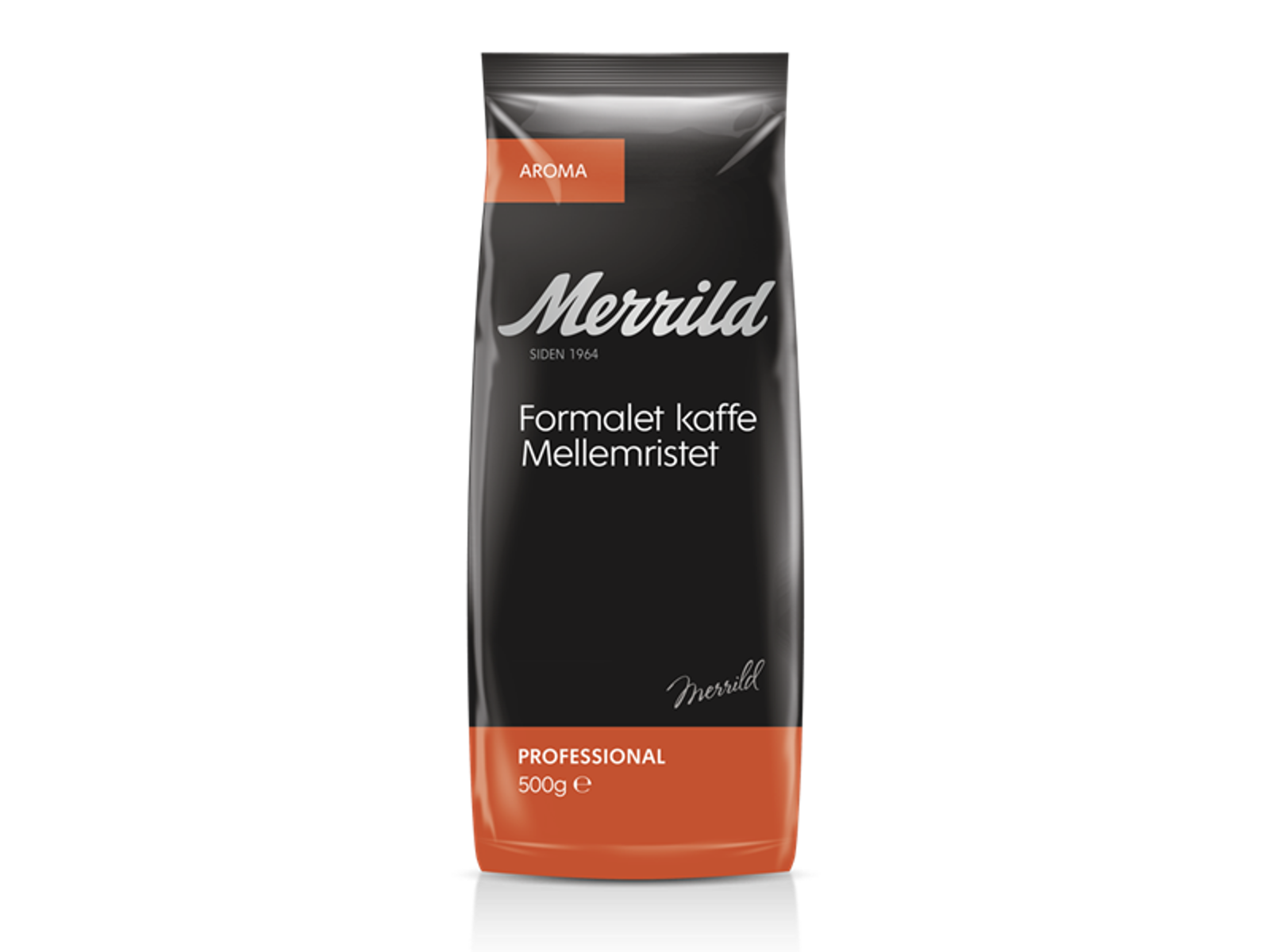 Merrild Aroma formalet kaffe i pose med 500 gram er en mellemristet kaffe, hvor du mærker fylden på tungen. En sand kvalitetskaffe med en afrundet eftersmag af tørrede frugter og bittersød chokolade.