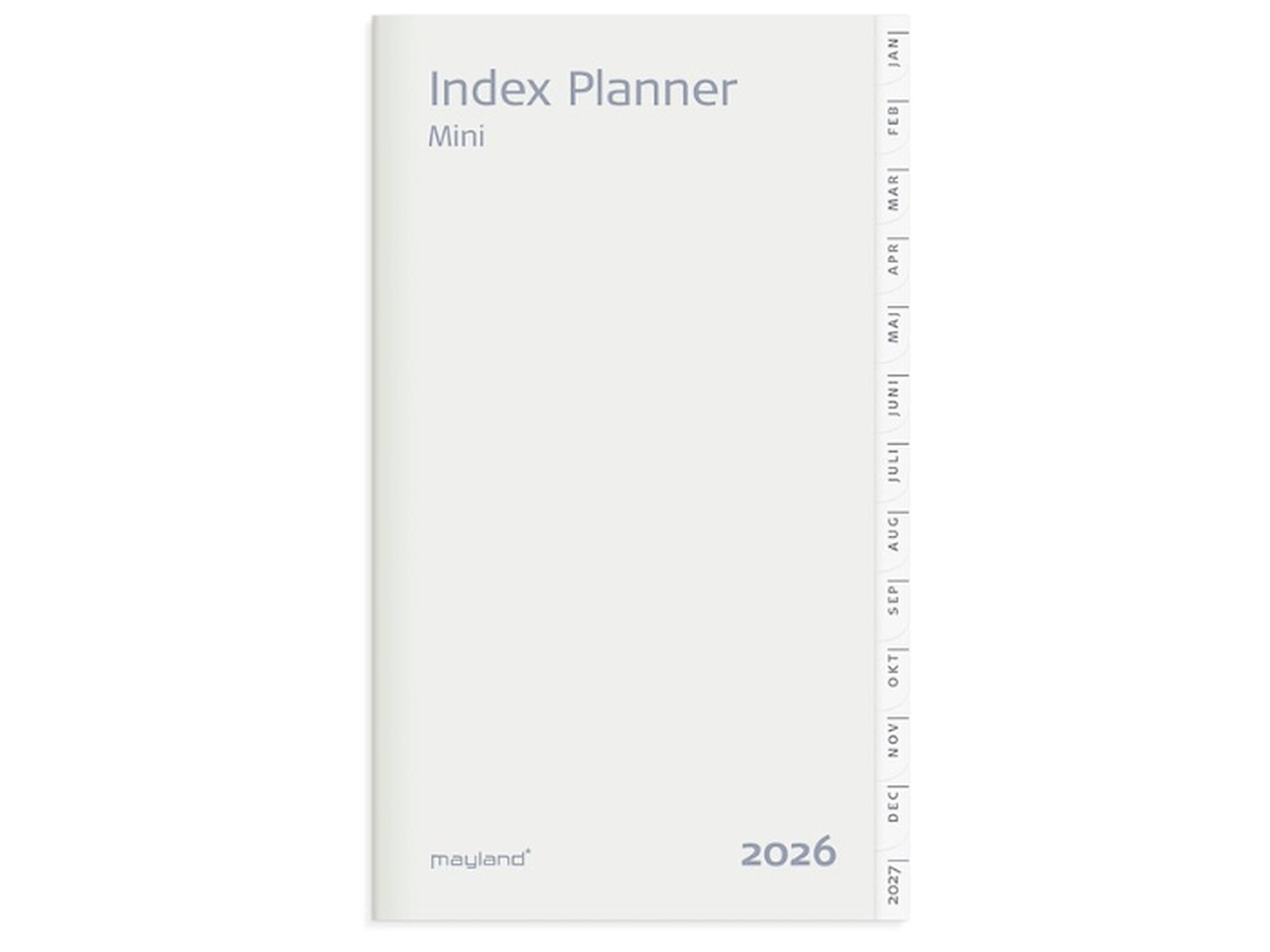 Mål: 132 x 77 x 5 mm. Layout: Måned/opslag. Tværformat. Timeinddeling 8-18. Kalendarium: 2026-01-01 – 2026-12-31. Omslag: Karton. Hæftet. Indhold: Månedsregister. Sideantal: 36. Miljøoplysninger: FSC®. Varemærke: Mayland.