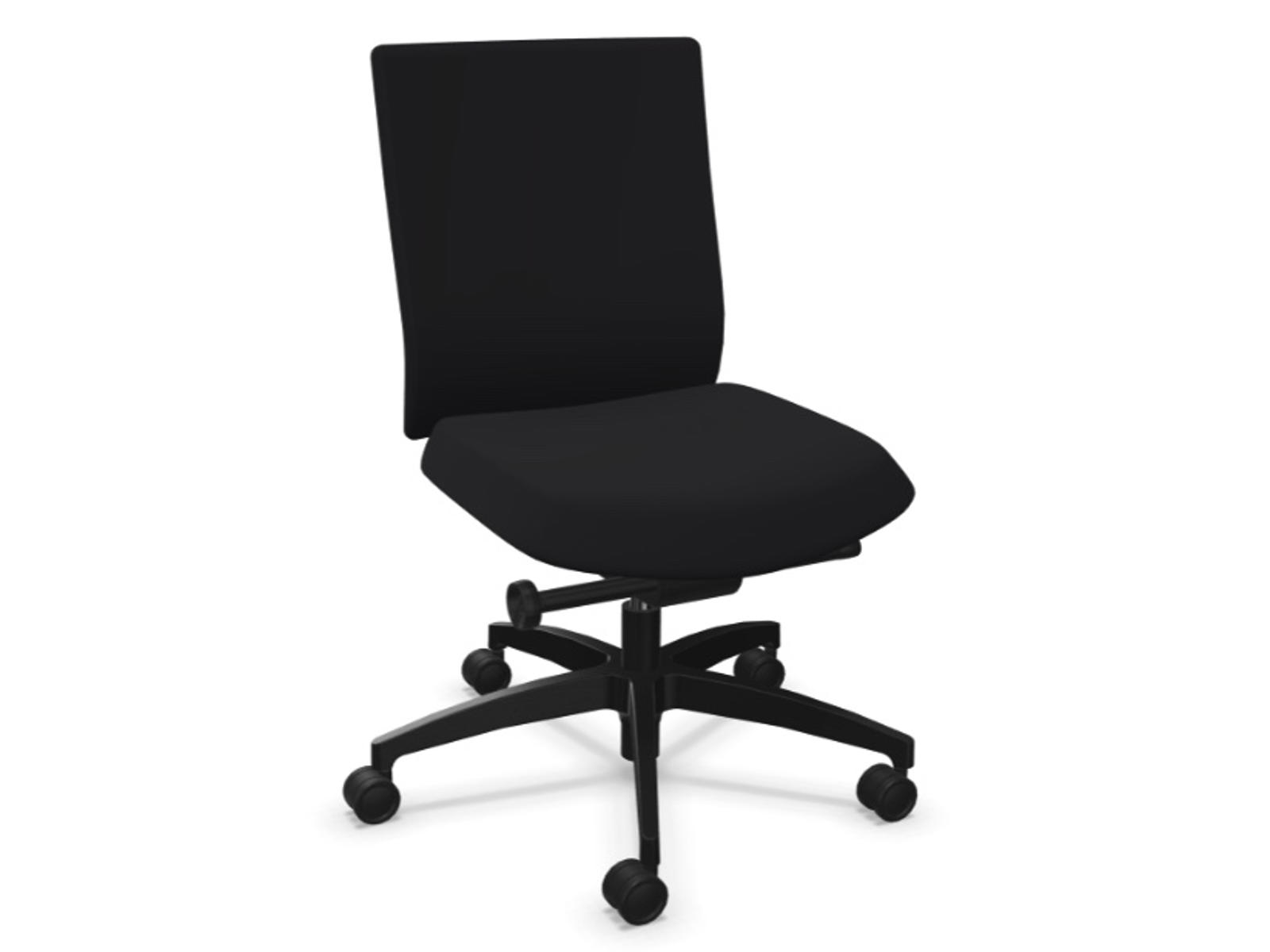 Just Evo kontorstol har SE mekanisme med sædedybdejustering på 6 cm, og fodkryds med bløde hjul til hårde gulve.