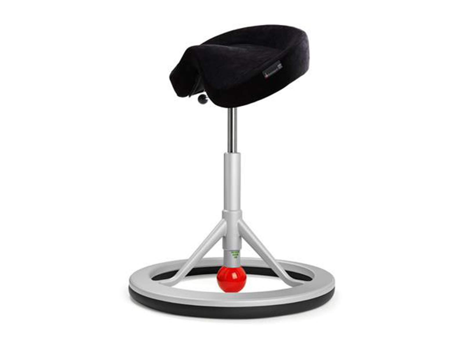 - Kuglen er støbt fast i røret som kan skrues ind og ud af aluminiumsunderstellet, for at regulere hvor meget vippefunktion der skal være på stolen.