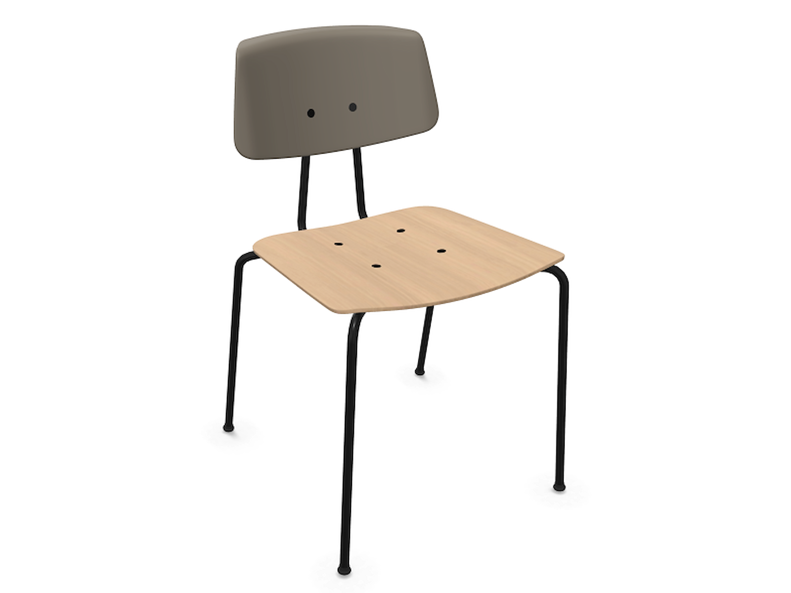STOL TIL KANTINE OG MØDELOKALE. SHAREBASIC SH01 STOL MED SORT STEL, SANDBRUN RYG I POLYPROPYLEN OG SÆDE I EG-FINER.