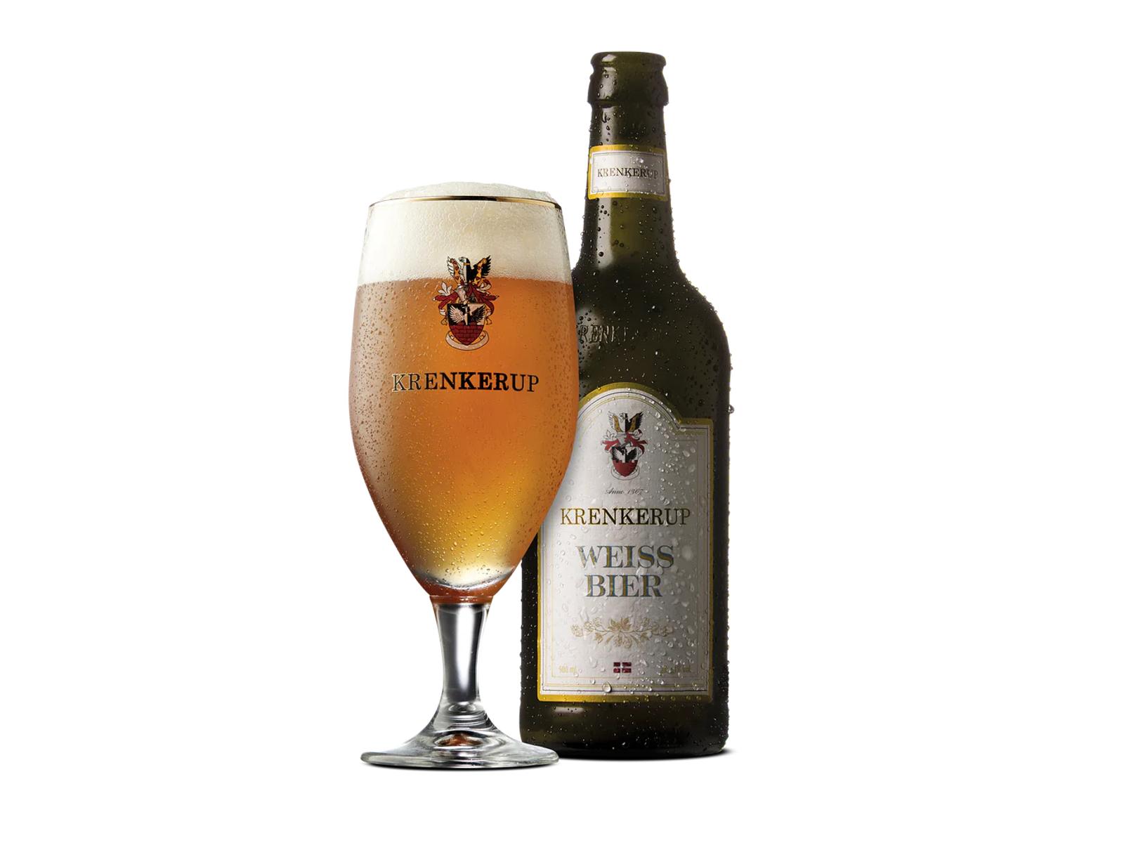 Krenkerup Weissbier er overgæret på traditionel vis, hvilket giver let bundfald og et kraftigt, flot hvidt skum.