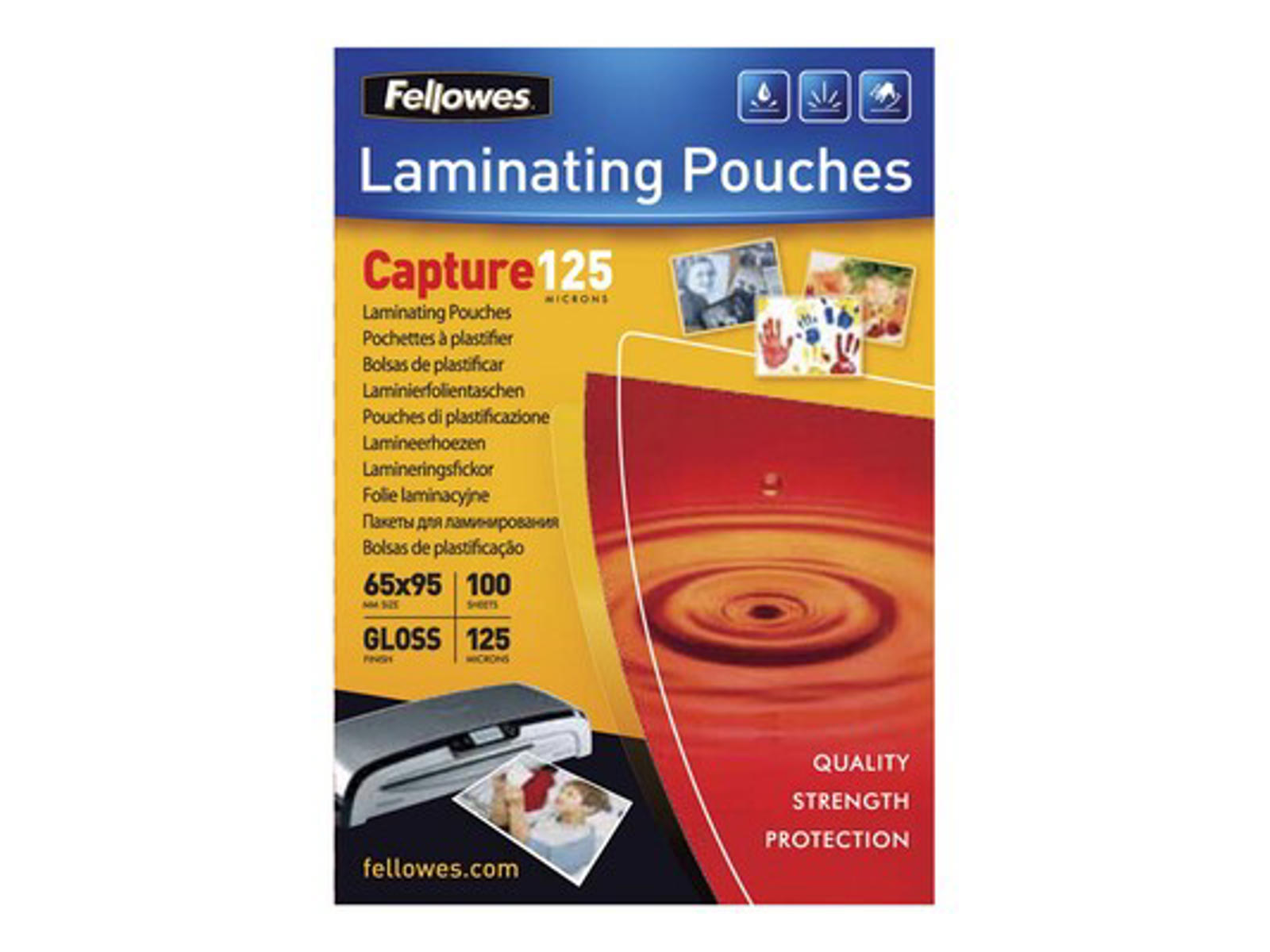 Premium lamineringslommer fra Fellowes med blank skinnende overflade. Velegnet til identitetskort, kreditkort, visitkort og besøgskort. Med en tykkelse på 125 mikron tilbyder disse lommer et højt niveau af dokumentbeskyttelse. Kan bruges til alle lamineringsmaskiner uanset mærke.