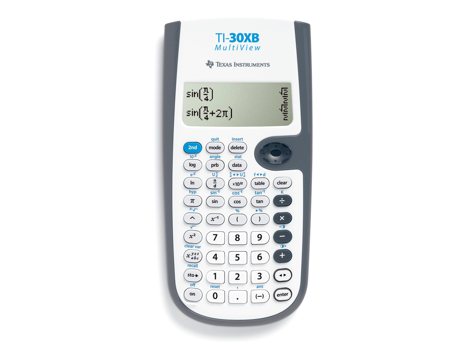 TI-30XB MultiView er den nye videnskabelige lommeregner, som kombinerer de kendte statistiske og videnskabelige funktioner fra den klassiske TI-30 med et flerlinies (Multi-line) display. TI-30XB MultiView fungerer og skriver resultater som du forventer det. Brøker skrives feks. på en rigtig brøkstreg som i lærerbøgerne. * De vigtige videnskabelige, trigonometriske og hyperbolske funktioner. * Multi-line skærm, så feks. brøker skrives naturligt, og du kan se tidligere indtastninger. * 2-variabel statistik: Indtast/slet/indsæt/editer individuelle statistiske data. * Equation recall funktion gør det muligt at genkalde, se og ændre tidligere udregninger og statistiske data. * Se og tast brøker på rigtige brøkstreger, som decimaltal eller en blanding * Data editor til at indtaste lister med data. * Liste funktion: Kan anvende en funktion på en liste af værdier. * Rødder vises, så du kan arbejde med rødder eksakt, og de kan bruges til at faktorisere nævneren i en brøk. * Eksponenter skrive