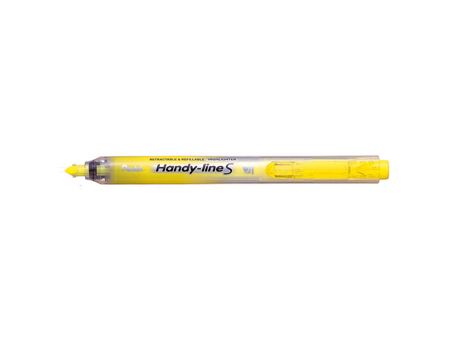 • Pentel Handy-line S tekstmarker med praktisk trykmekanisme. Derfor ingen løse hætter og super let at bruge med én hånd. Blækket er helt lugtfri og tørrer ikke ud. Kan lave både tynde streger på 1,0mm og tykkere streger helt op til 4,5mm. 54% RECYCOLOGY og refillable.