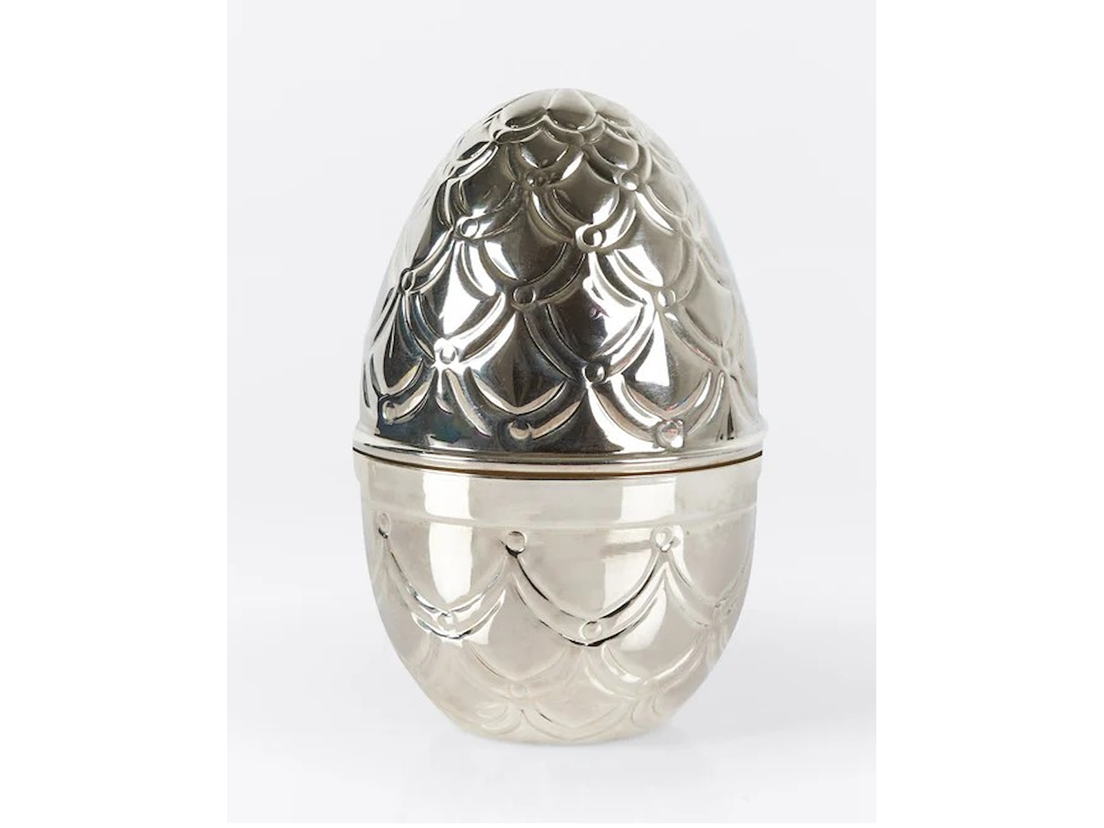 • Det ikoniske sølvæg er både en påsketradition og kærlig forårsgave, fyldt med fine hånddekorerede, økologiske chokoladeæg i smukke farver og med skønne fyldninger. Juvelér Carl Fabergés kunstneriske og historiske påskeæg er inspirationen til de sirlige guirlander på årets sølvæg.