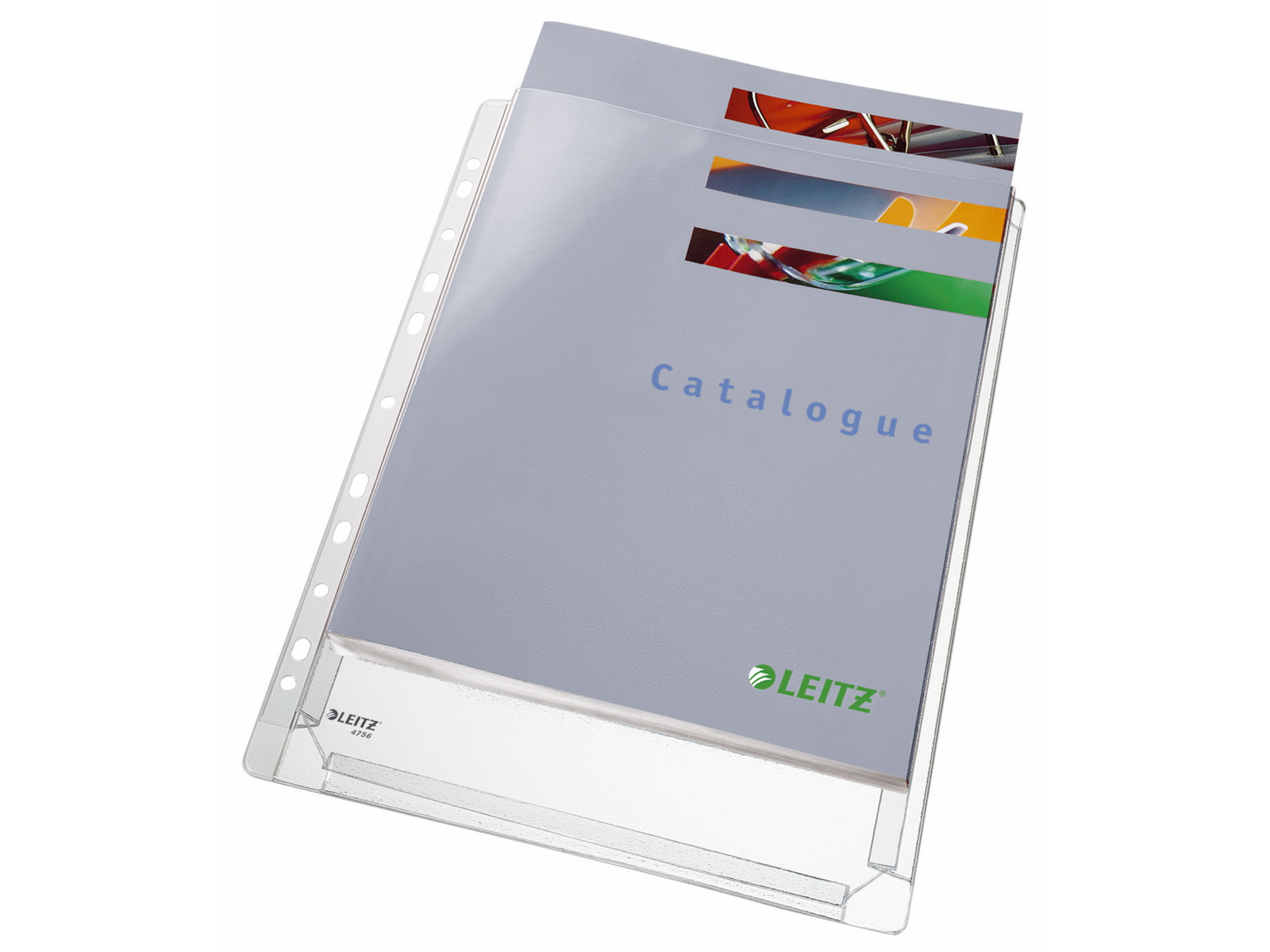 Ekspanderbar 20 mm fold giver mulighed for arkivering af store dokumenter og kataloger. Ideel til brev- og ringordnere * Har stor kapacitet, passende til 200 ark A4 (80 gsm) * Meget holdbar. Stærk, blød og præget folie i 0,17 mm tykkelse * Holder meget lang tid og rivebeskyttet. * Topåbning * 11 huller til universal brug