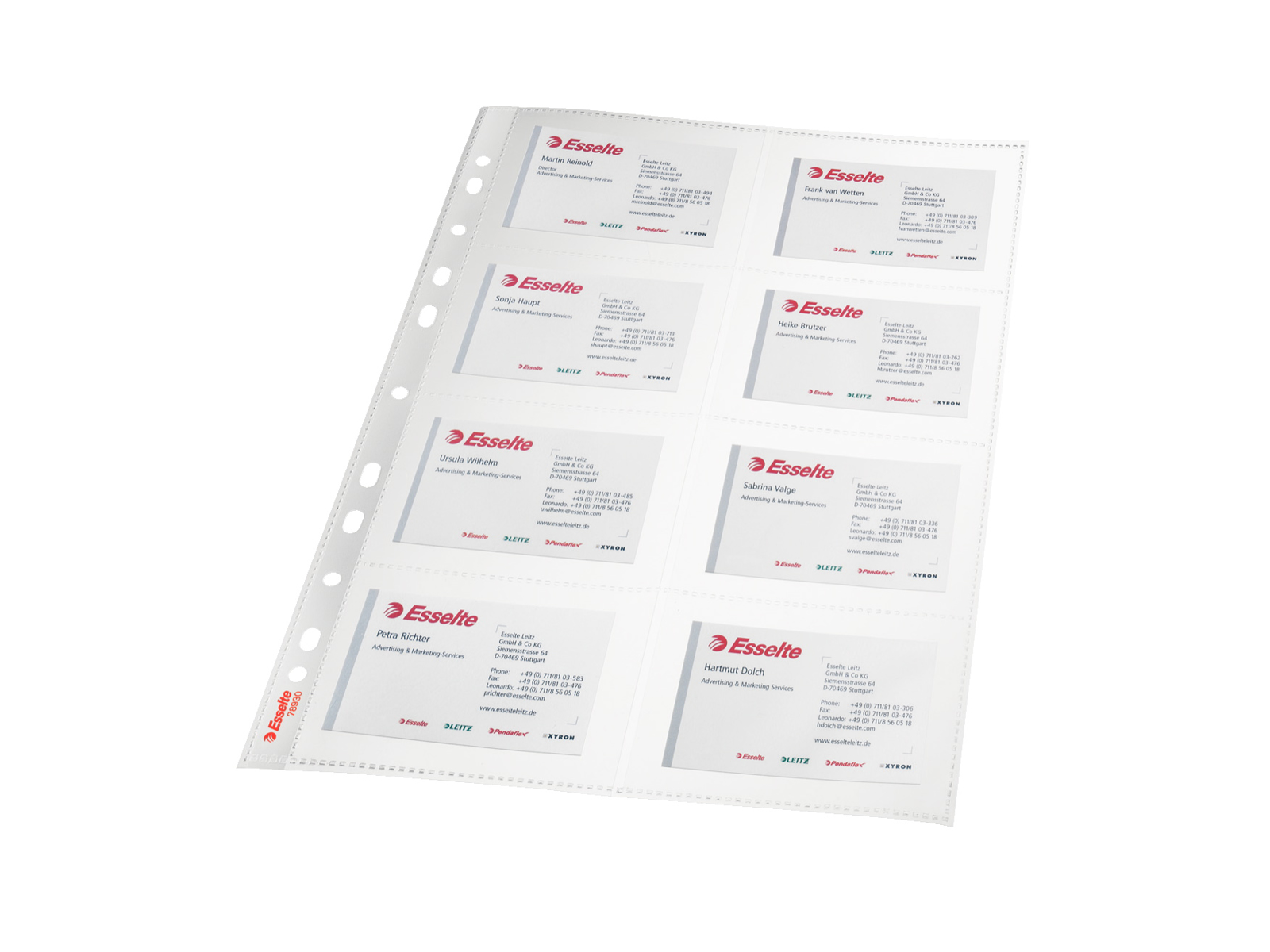 Lomme med 8 rum til visitkort. Multihulning giver nem opbevaring af dokumenter i brev- og ringordnere * Lomme kan opbevare 16 visitkort, der sidder 'ryg mod ryg' * Glasklar 0.105 mm PP folie, copysafe * * 11 huller til universal brug * Til A4 format