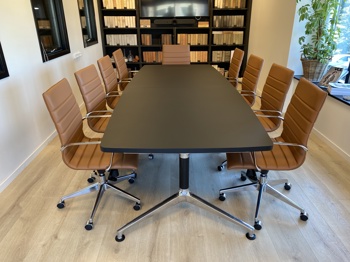 De nye mødeborde giver plads til samarbejde, sparring og beslutninger. Med fokus på fleksibilitet kan bordene let tilpasses forskellige mødeformer – fra hurtige stående briefings til længere strategimøder.