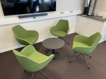 I virksomhedens loungeområder har vi skabt en afslappet atmosfære med komfortable loungemøbler, hvor medarbejdere kan trække sig tilbage, afholde uformelle møder eller bare nyde en pause.