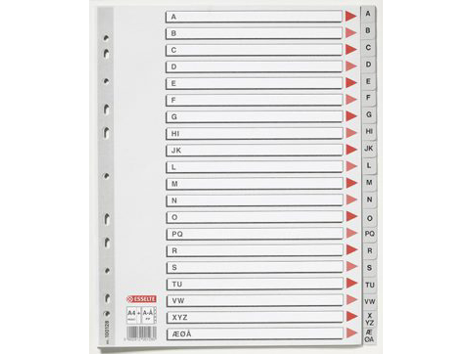 Register i grå farver. Forblad med store skriveområder for indhold. * A4+ format giver hurtig adgang, også når der arkiveres med lommer * Plastforstærket hullet stribe på forblad * A-Å (DK) faner printet * 11 universalhuller * A4+ format * 0,12 mm PP