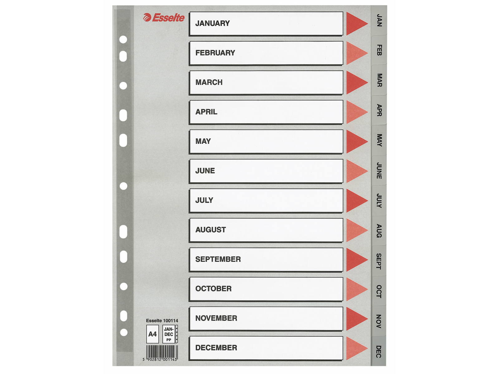 REGISTER ESSELTE A4 PLAST JAN-DEC GRÅ MED KARTONFORBLAD 100114