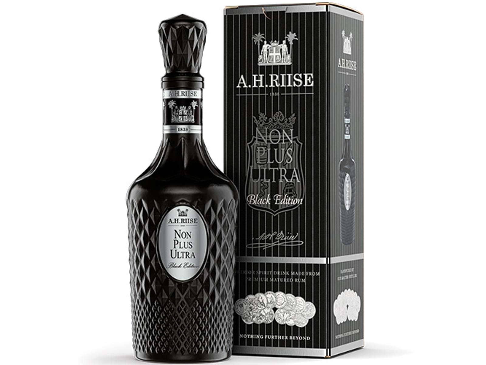 Grundbasen for rommen er A.H. Riise Non Plus Ultra Very Rare, som efterfølgende har ligget på diverse fade. Denne rom er en blend af over 50 af A.H. Riise´s mest eksklusive fade.