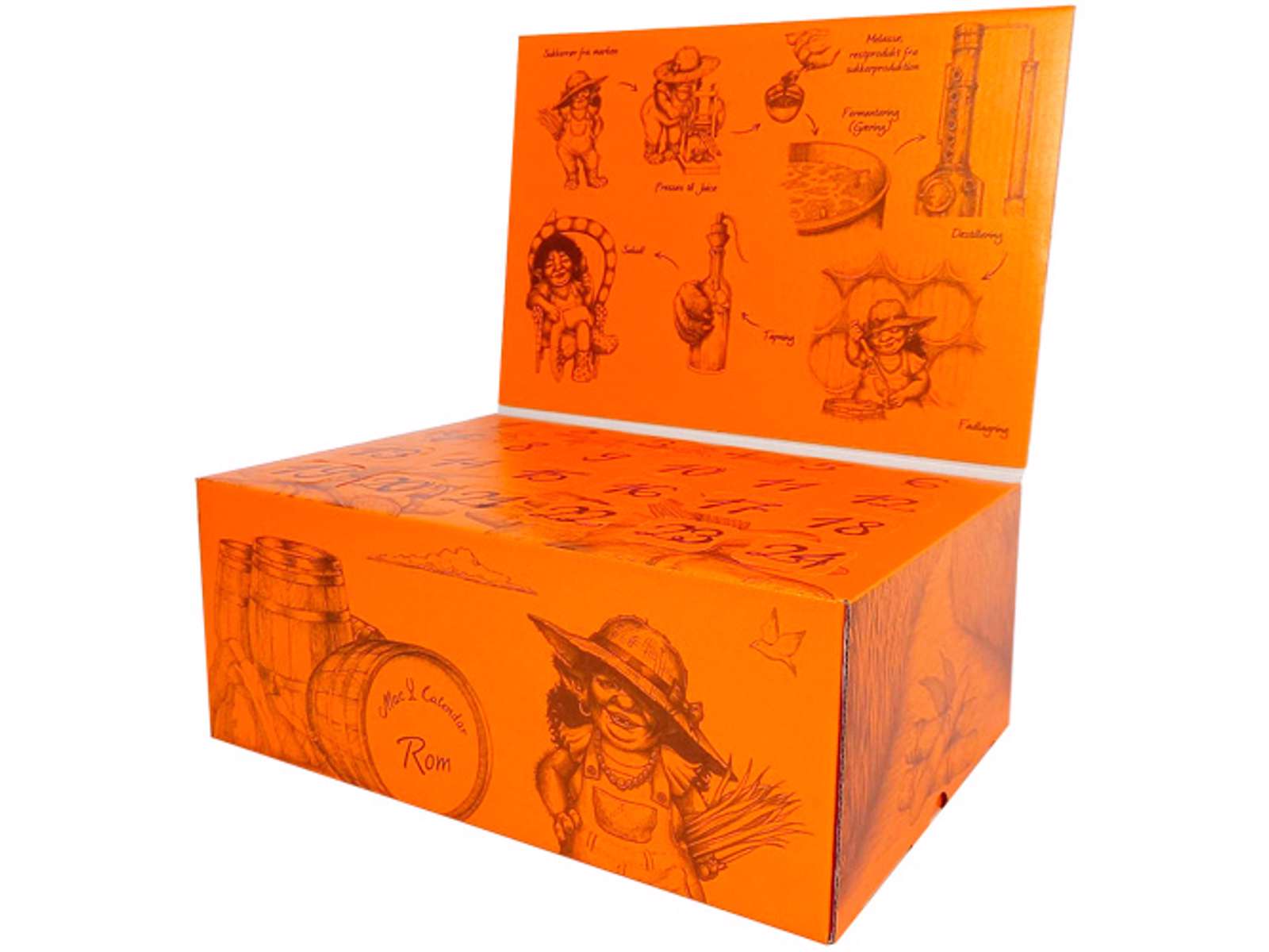 Kalenderen i sig selv, fortæller historien om de fire søskende Mac Calendar. En af dem, Luna flyttede til Caribien, hvor hun byggede en hacienda, startede med at dyrke sukkerrør og endte op som en af de store rom-producenter. Vi får lov til at komme indenfor til Lunas helt eget rom paradis, hvor hun gerne deler et glas rom med os i den mørke december måned.