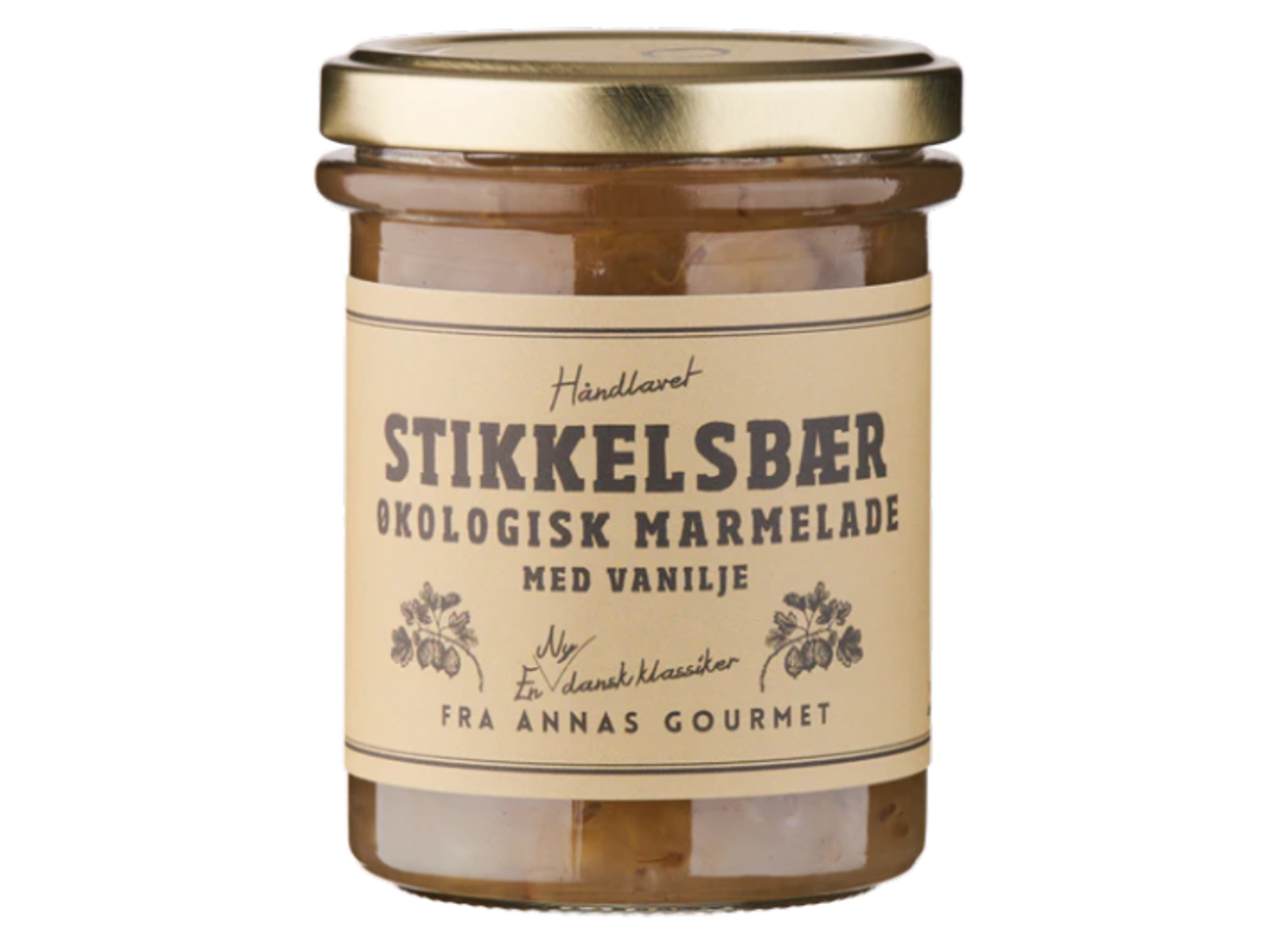 Økologisk stikkelsbærmarmelade med et skønt vaniljestrejf, der forenes i en meget fint afbalanceret sød og syrlig skønhed. Marmeladen er tilberedt efter danske traditioner og giver en helt unik smag til ganen.