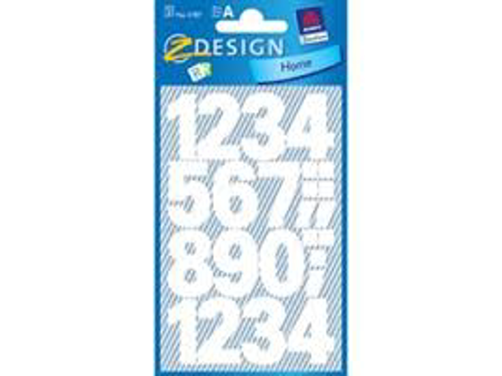 Talrække med cifrene 0-9 på påklæbning på diverse overflader. Tallene er hvide og har størrelsen 25 mm.