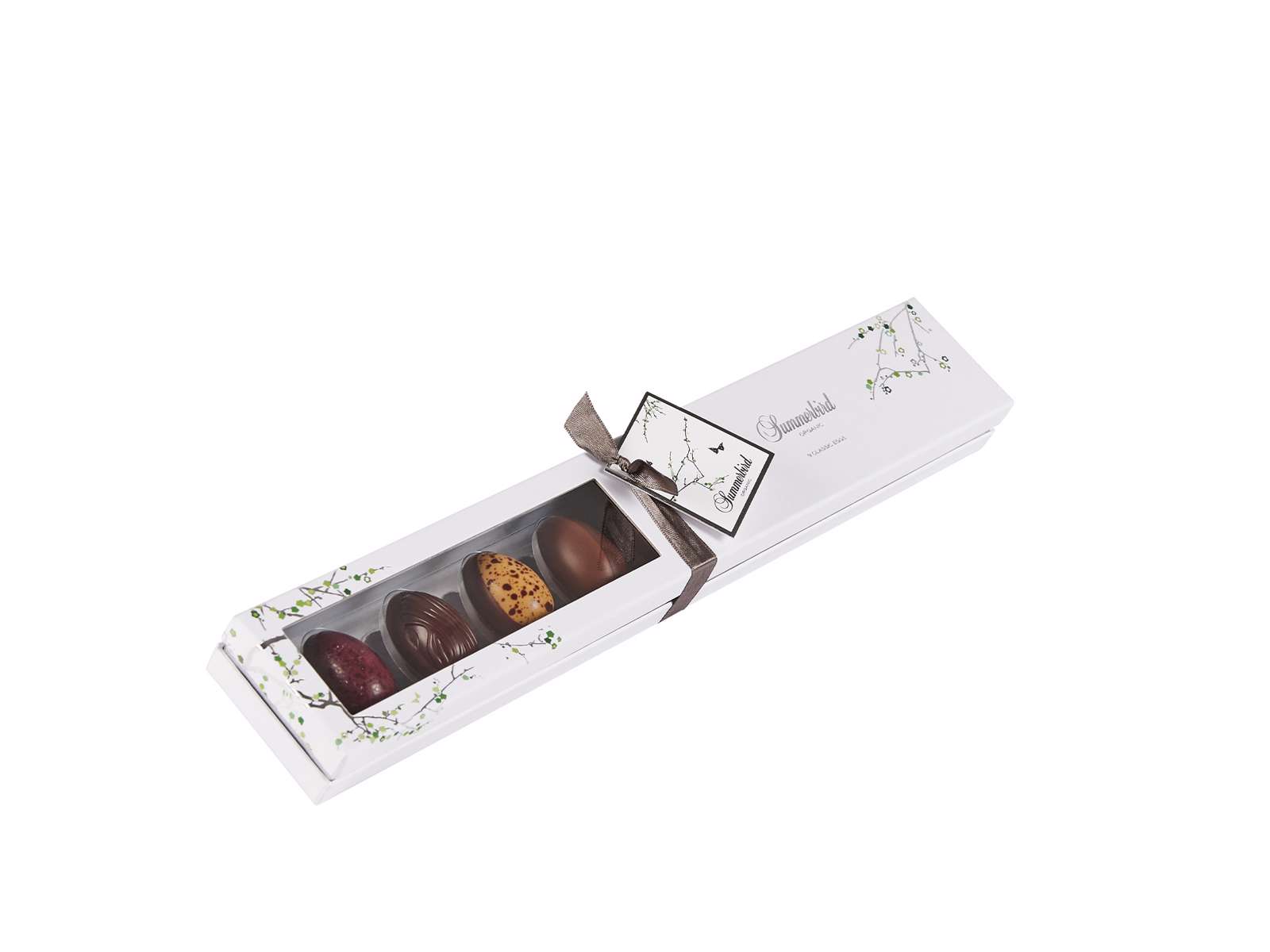 9 Classic Eggs er vores bud på en påskeæske, der hylder både de klassiske smage og moderne gastronomi. En æske, hvor alle sanser bliver bragt i spil. Æsken indeholder 9 forskellige varianter af vores raffinerede påskeæg i form af bl.a. marcipan af stenvalsede middelhavsmandler, praliné, karamel og orangeblomst. En æske for alle, som sætter pris på velsmag, godt håndværk og fantastiske råvarer.