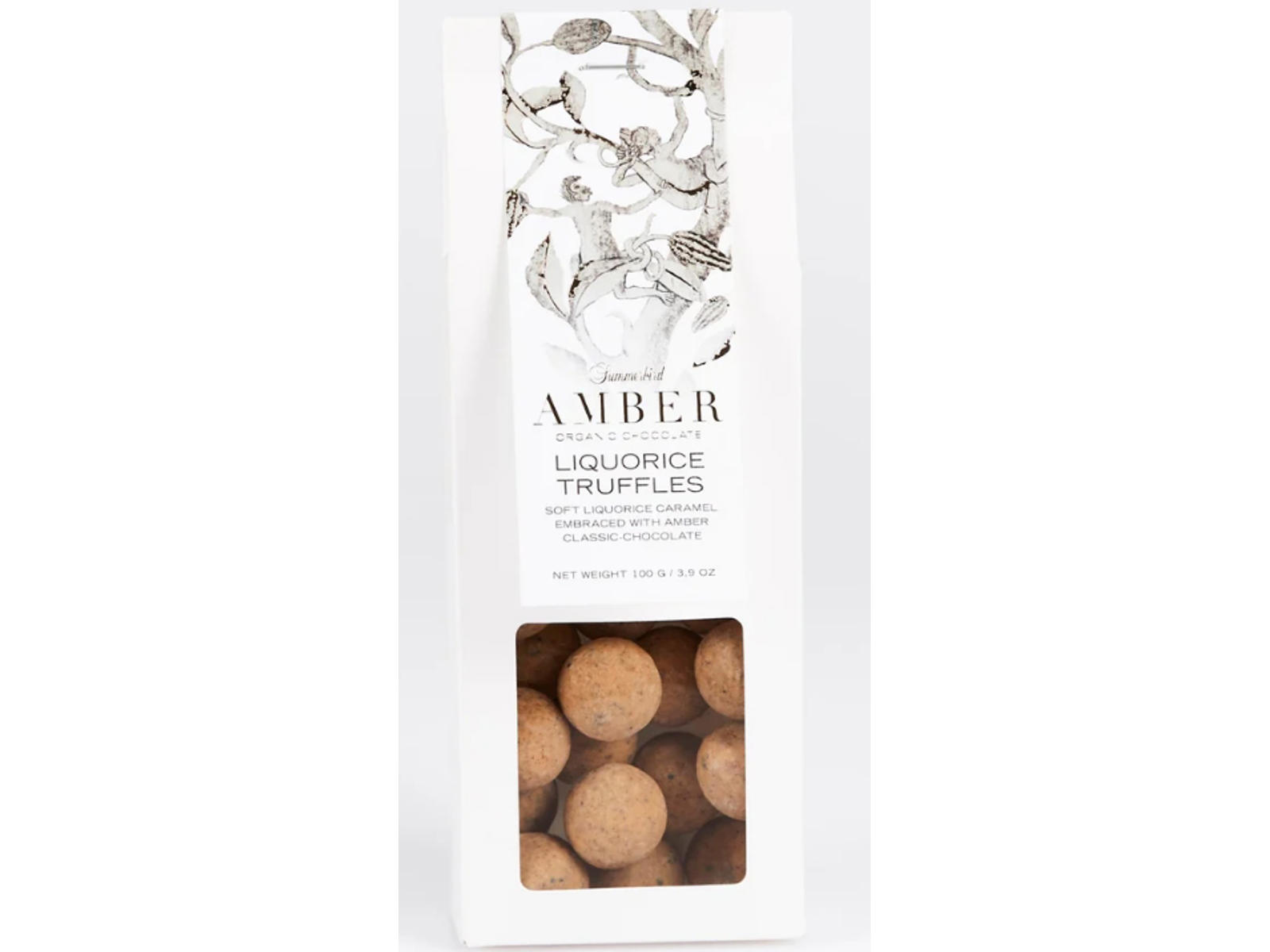 DK/SE/NO UK DE Ingredienser / Ingredients / Zutaten * = Økologisk / Organic / Bio *sukker, *kakaosmør (25%), *invertsukkersirup, *mælk/mjölkpulver (17%), *flormelis, *glukosesirup, *smør, *lakridspulver (2%), vand, *citronsaft, *lakridsgranulat, emulgator (*sojalecitin), *vanilje. Bio Lakritz-Trüffel dragiert mit Amber - goldene Schokolade DK/SE/NO Økologiske lakridstrøfler drageret med Amber - gylden chokolade UK DE Organic liquorice truffles drageed with Amber chocolate Beskrivelse / Description / Beschreibung 5709451047620 Netto: Barcode: 4213 10 x 100 g Product: Number: 4214 100 g Liquorice Truffles 5709451047613