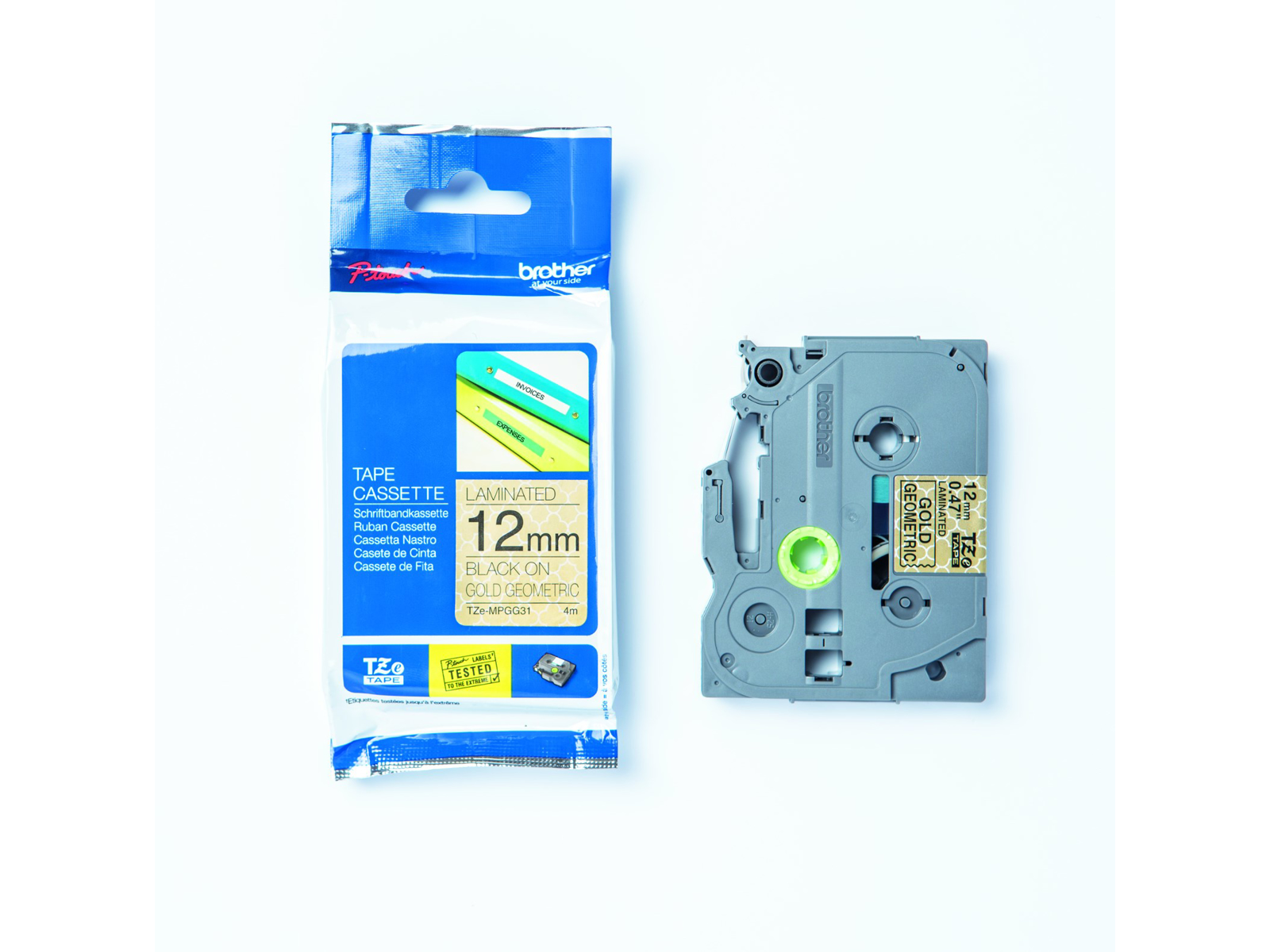 PRÆGETAPE BROTHER TZEMPGG31 12MMX 4M SORT PÅ GULD GEOMETRIC ***