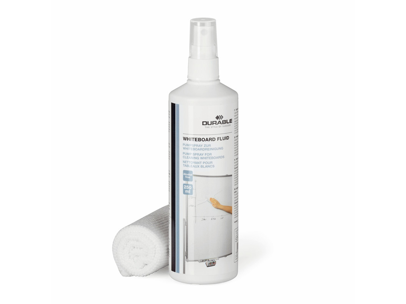 Rensesæt med rensespray og microfiberklud til rengøring af whiteboardtavler. Uden alkohol. Spray lidt væske på kluden, rens og tør tavlen. Fjerner snavs, fedtfingre og blækrester. Renser og beskytter whiteboardtavlens overflade varigt. Indhold: 250 ml spray og en mikrofiber klud (25x25mm).
