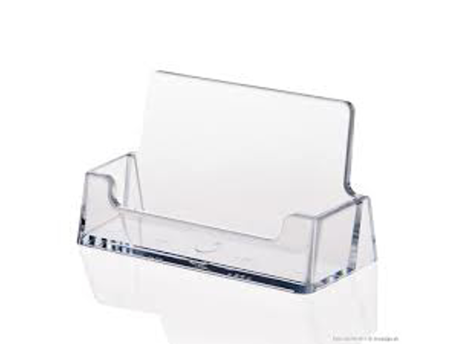 Kortholder i klar acryl til flere kort, eksempelvis visitkort. Stående model, som er beregnet til bordopstilling.