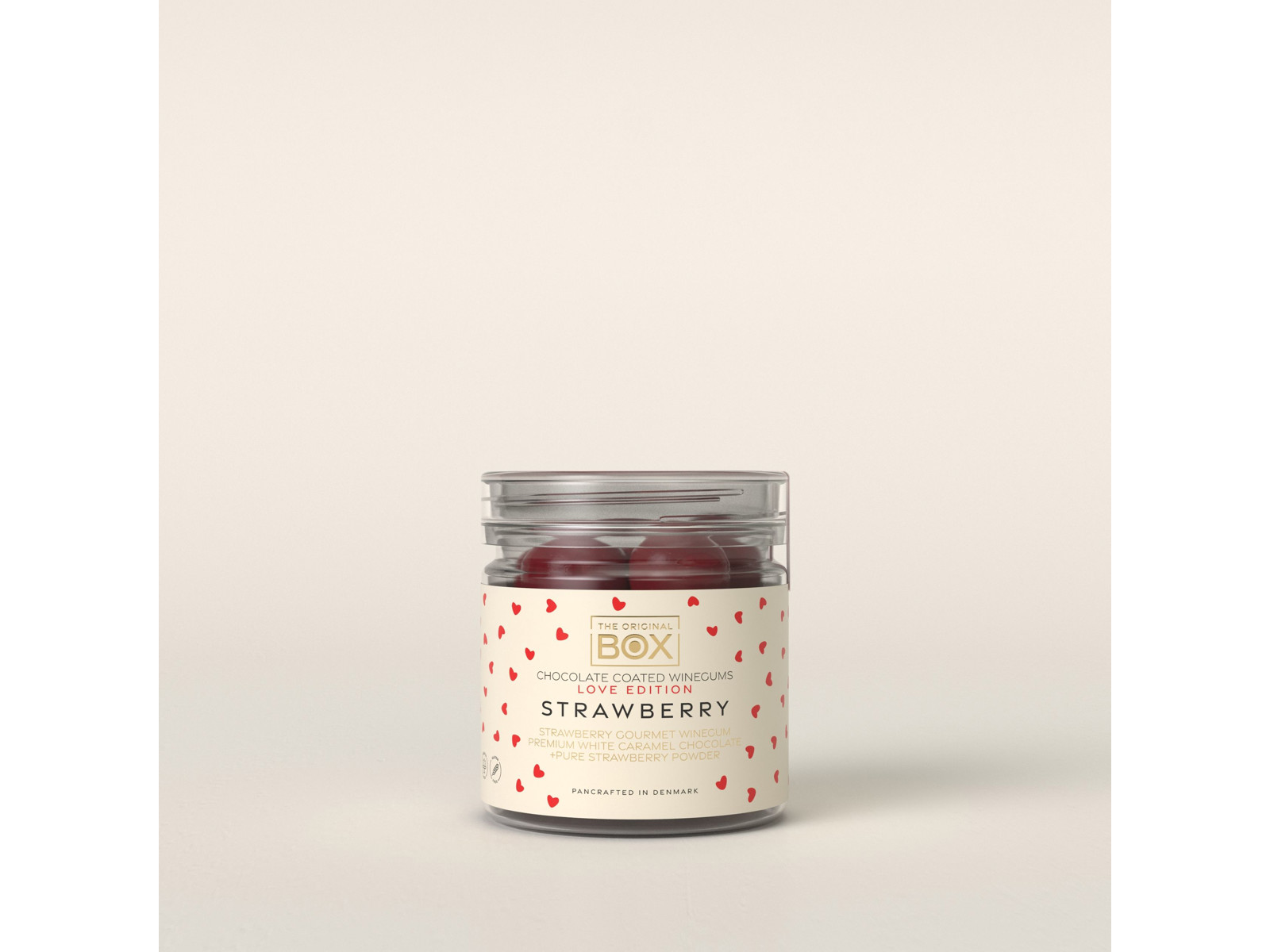 Oplev en eksplosion af sødme med vores gelatinefri jordbærvingummi af bedste kvalitet. Disse lækre vingummier er indhyllet i premium hvid karamelchokolade og rullet i ufortyndet jordbærpulver af højeste kvalitet. Med en perfekt balance mellem frisk jordbærsmag og cremet karamelchokolade vil vores vingummier forkæle dine smagsløg. Fremstillet uden kompromis på smag eller kvalitet, er vores Jordbær variant den ultimative nydelse. Lad dig forføre af den frugtige sødme og delikate tekstur i hver bid.